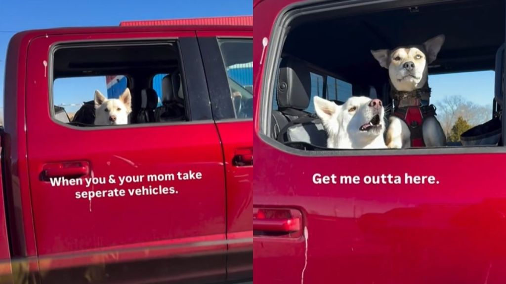 A third viewer wrote what the dogs thought: “Get me out now mom, I want to go play!” Another commenter captured the whole relatable chaos of it, writing, “This is way too relatable. Separate cars… same destination… maximum impatience.”