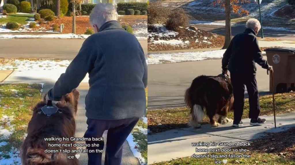 Video: Big Dog Helps Grandma Walk Safely on Ice