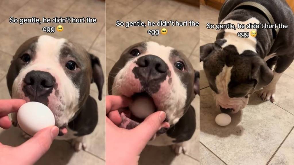 The video begins with the caption reading, “So gentle, he didn’t hurt the egg.” Reggie’s owner decided to try the trending test, in which pet parents hand their dog an egg to see how it reacts. Reggie carefully takes the egg into his mouth and slowly carries it around, pausing as if he’s trying to understand exactly what he’s holding. He never drops the egg and never cracks it.