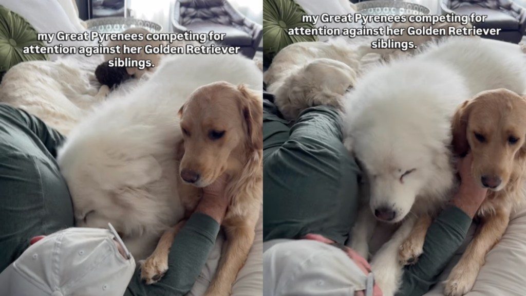 The post Video: Big Dog Competes With Golden Retriever Siblings for Owner’s Attention appeared first on DogTime.