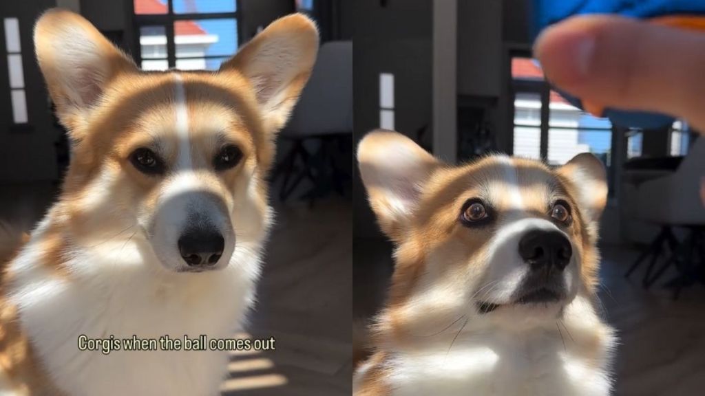 Corgi has striking reaction to owner bringing out the ball